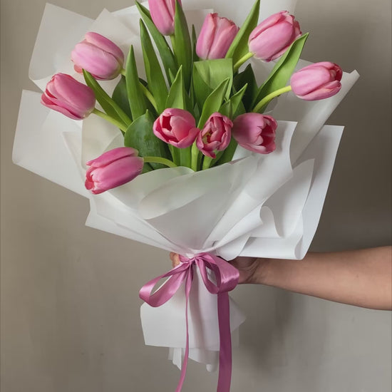 Make an unforgettable impression with our Candy Blush Bouquet. Featuring the intense beauty of Pink Tulips these fresh-cut blooms are hand-picked for their deep color and velvety softness.