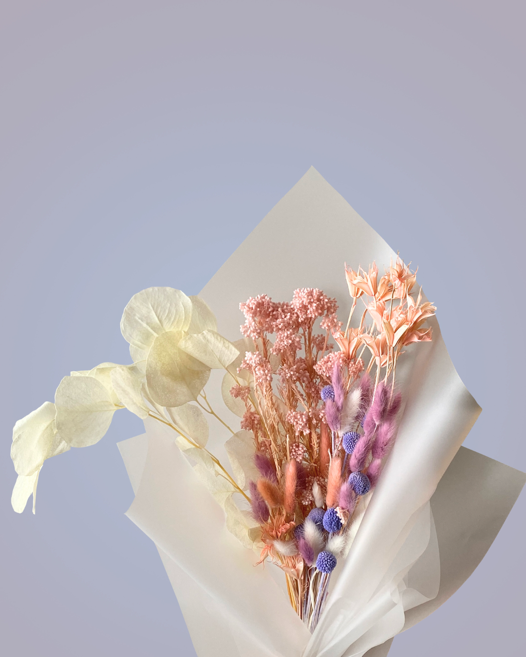 Delicate, timeless, and full of charm — Kyoto Blush is a preserved bouquet from our Via Flora Collection, celebrating the poetic serenity of city blooms. Inspired by the graceful ambiance of Kyoto, this floral arrangement captures the elegance of baby pink, baby purple, peach, and creamy whites.